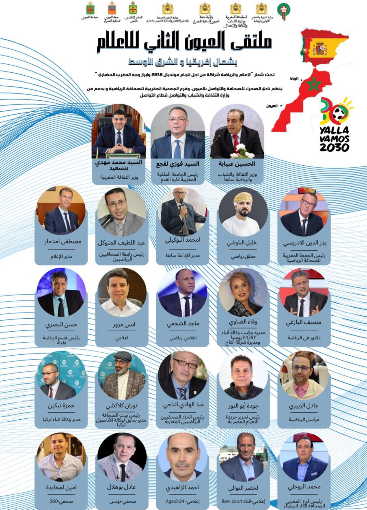 بدعم وزارة الثقافة والشباب والتواصل وبتعاون مع ولاية العيون ، ينظم نادي الصحراء للصحافة والتواصل بالعيون تحت شعار “الإعلام والرياضة شراكة من اجل انجاح مونديال 2030 وابراز وجه المغرب الحضاري “، وبشراكة مع شركة فوس بوكراع خلال الفترة الممتدة من 20 إلى 22 دجنبر الجاري، “ملتقى العيون الثاني للإعلام بالشرق الأوسط وشمال إفريقيا”، وذلك تخليدا للذكرى الـ 49 للمسيرة الخضراء المظفرة والذكرى الـ 67 لعيد الاستقلال المجيد. ويعد هذا الملتقى، فرصة هامة لإبراز دور الاعلام في كسب رهان التنظيم المشترك لمونديال 2030 مع إسبانيا والبرتغال ، وفسح المجال من أجل التشبيك بين هيئات الصحافيين المغاربة وأشقائهم بأفريقيا والشرق الأوسط وأوروبا ودول أمريكا اللاتينية والأتراك، بالإضافة إلى تعريف المشاركين بأهمية الفرص الاستثمارية التي سيتيحها هذا المشروع الملكي الهام، مما يتطلب منا جميعا كإعلاميين العمل على تعزيز التواصل للتقارب بين الثقافات المختلفة والمتنوعة.