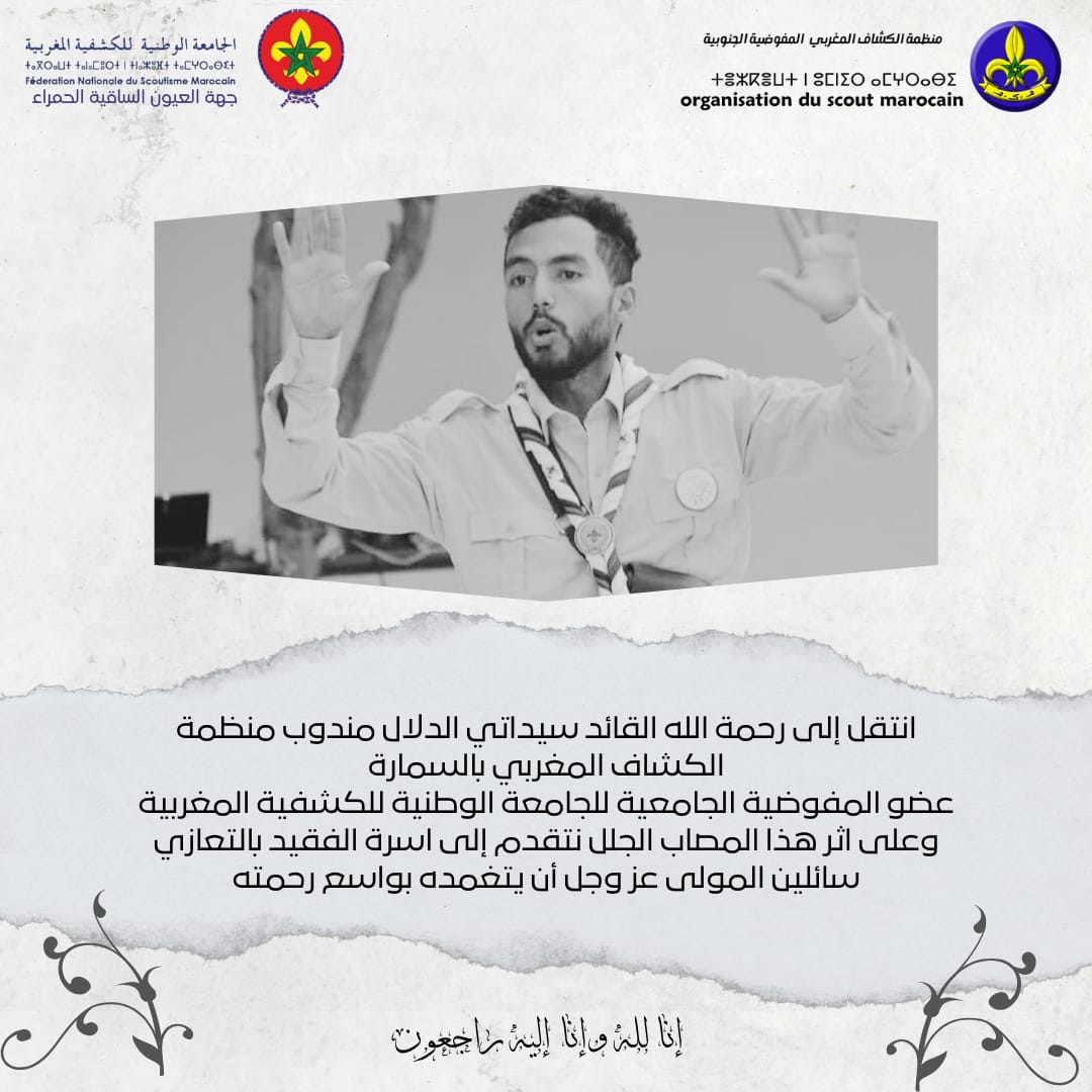 فجعت مدينة السمارة بصفة عامة ومنظمة الكشاف المغربي بصفة خاصة ، في وفاة هذا الرجل الطيب و بهذه المناسبة الأليمة نعزي أنفسنا و عائلة “أهل الدلال ” قاطبة ، و نعزي أنفسنا و أحســــن الله عزاءكم و عظم أجركــــم ، إن لله ما أخذ و له ما أعطى و كل شيء عـــنده بأجل مــسمى ، فلتصبروا ، و تصابروا و نرجـــوا الله أن يغفــــر له ، و أن يرحمه ، و أن يسكنه فسيـــح جـــناته.